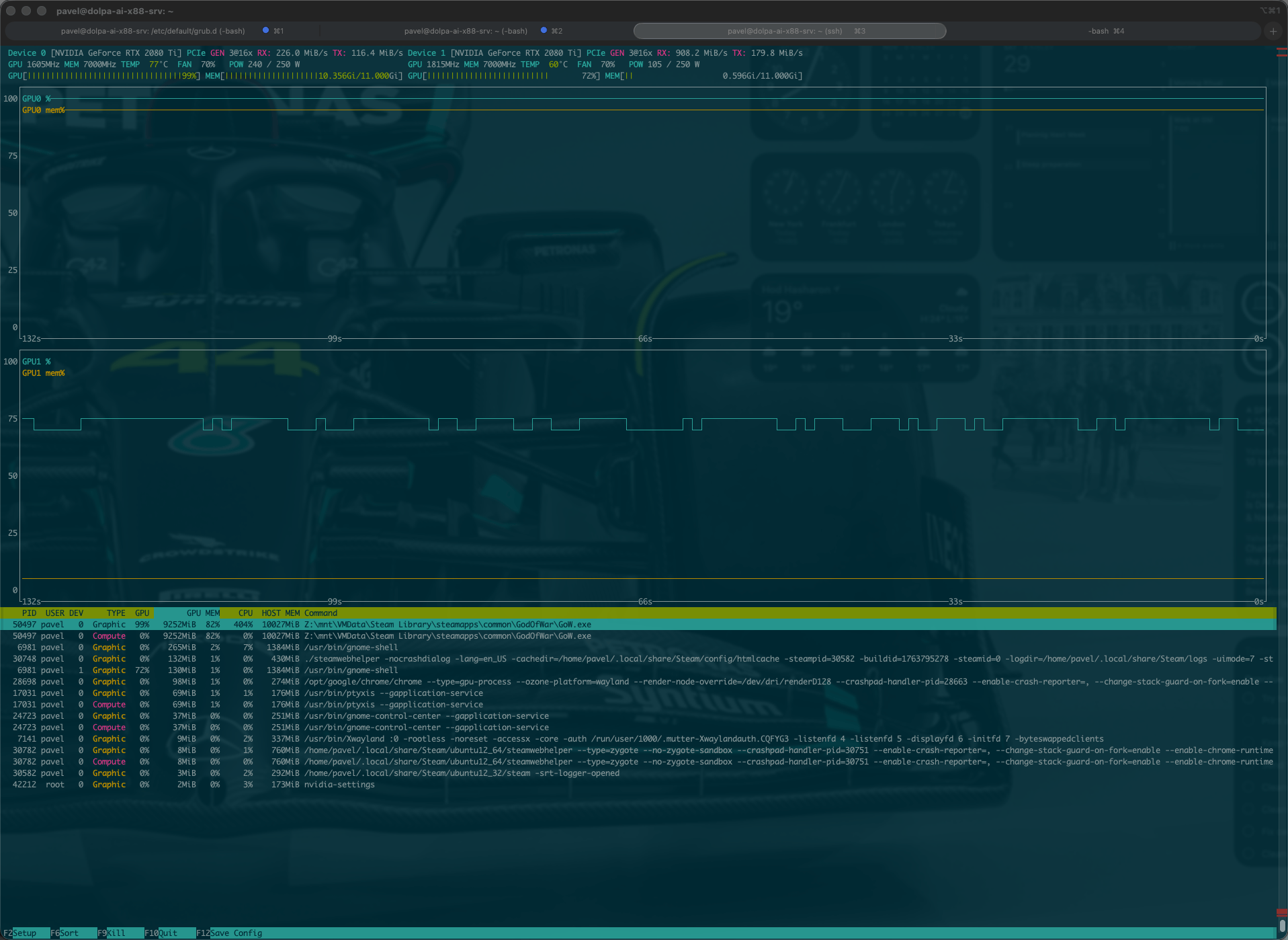 Because this is a dual-GPU machine, I monitored GPU usage.