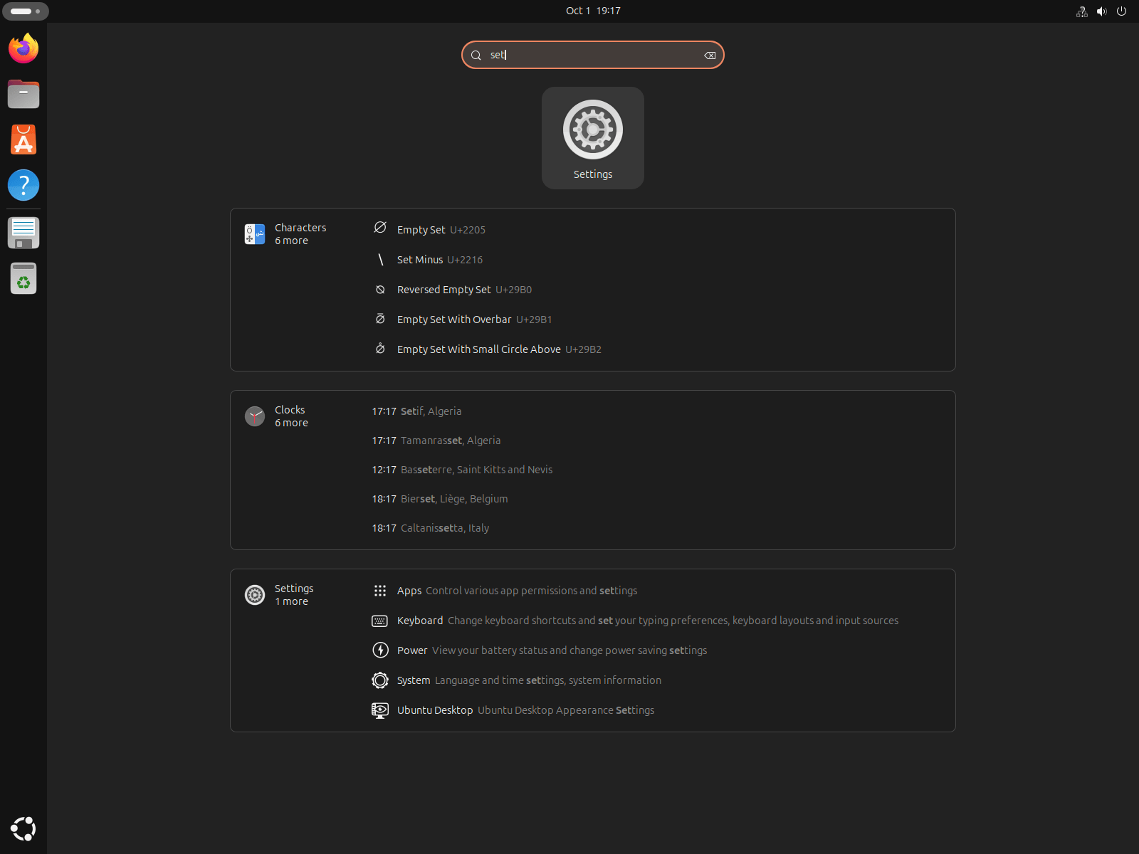 - Open Settings by clicking on the "Show Applications" icon and searching for "Settings."