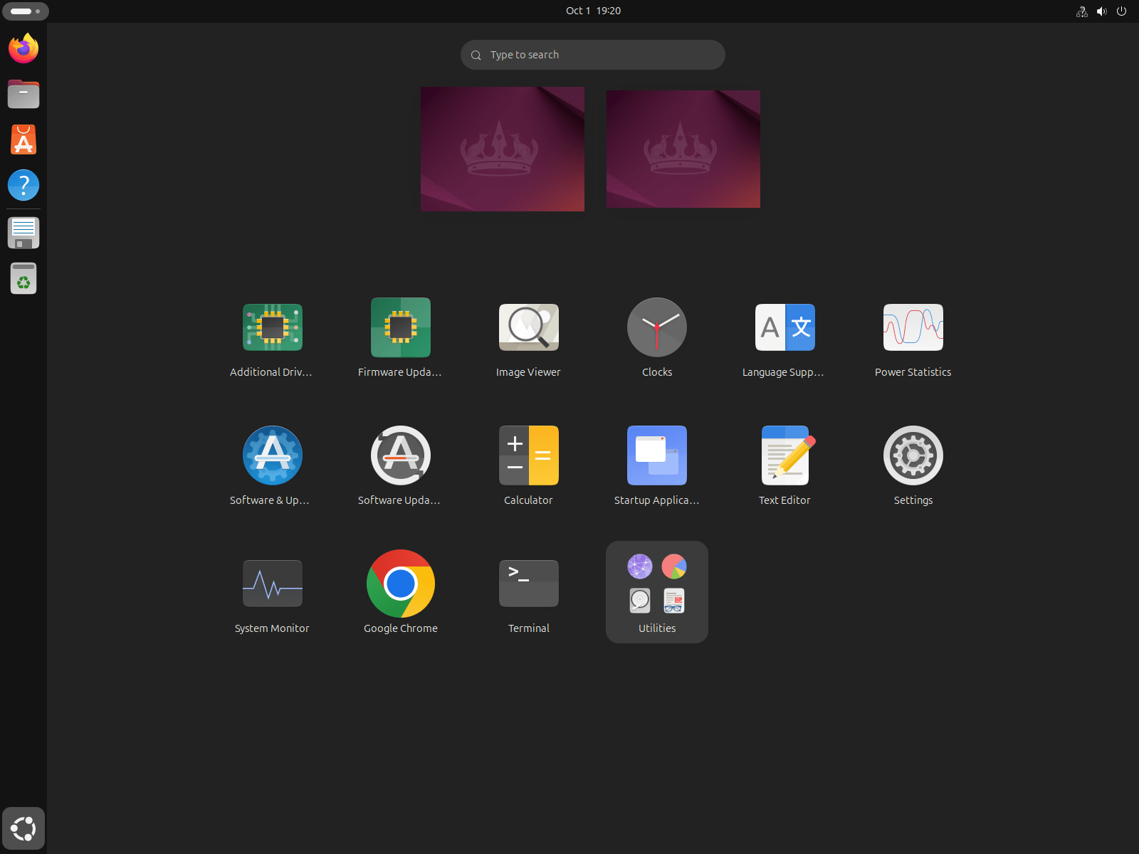 When you click on the "Show Applications" icon at the bottom of the Dock or press Super + A, the Application Launcher will open. This is where you can browse all installed applications, view frequently used apps, and search for any specific app.