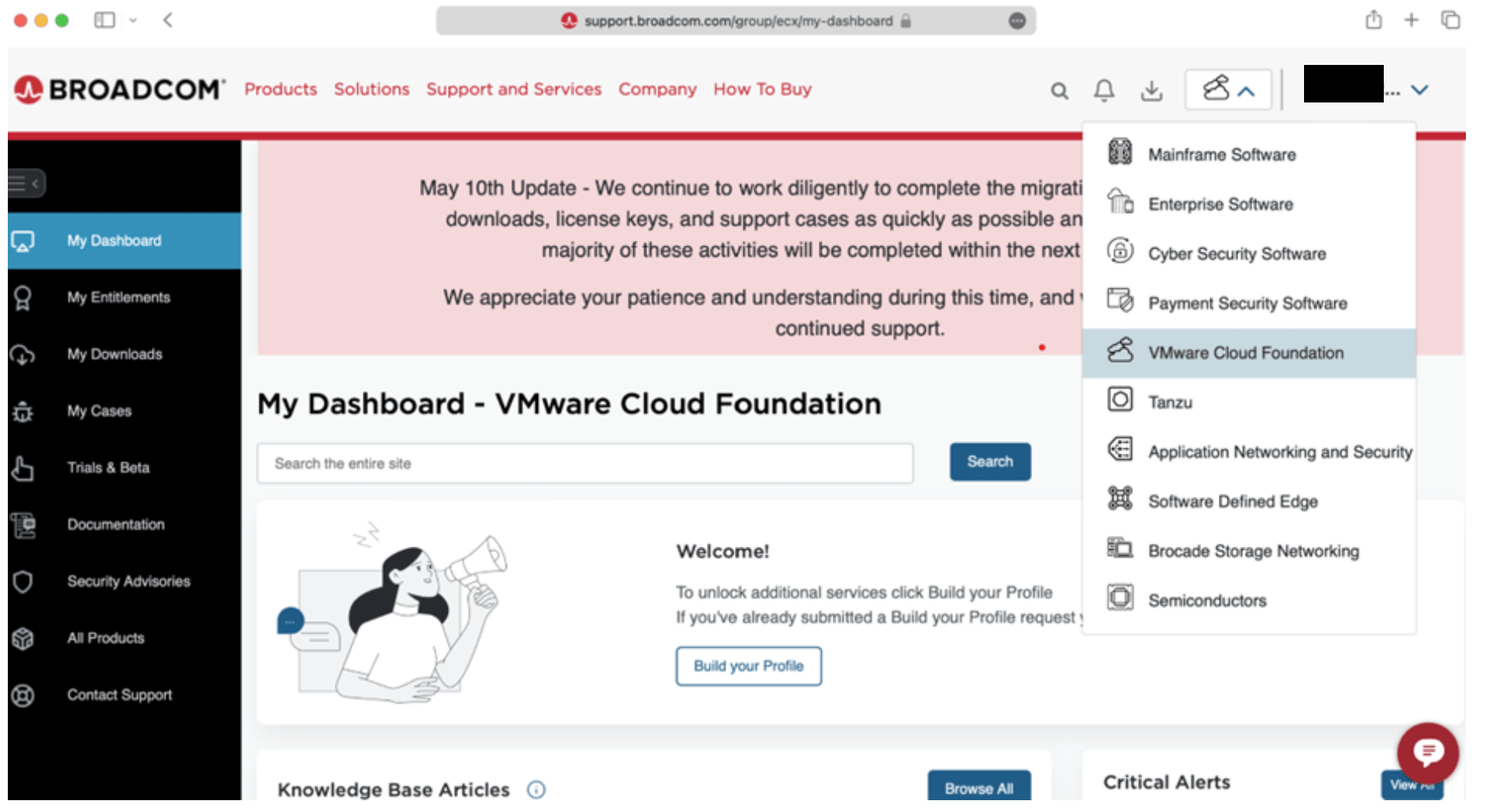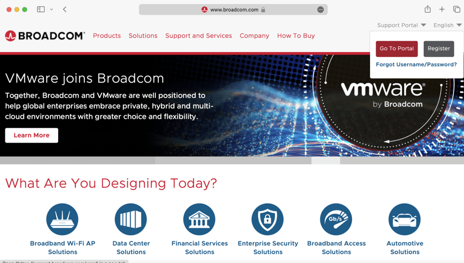 Once logged in, you should be redirected to support.broadcom.com. If not, you can manually visit this URL.