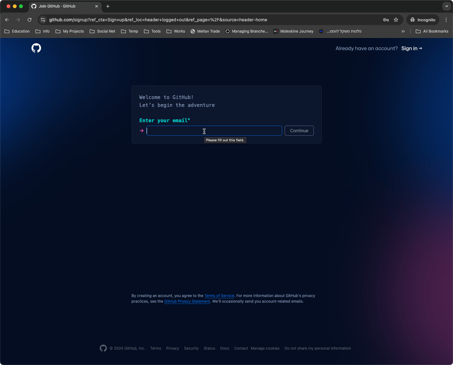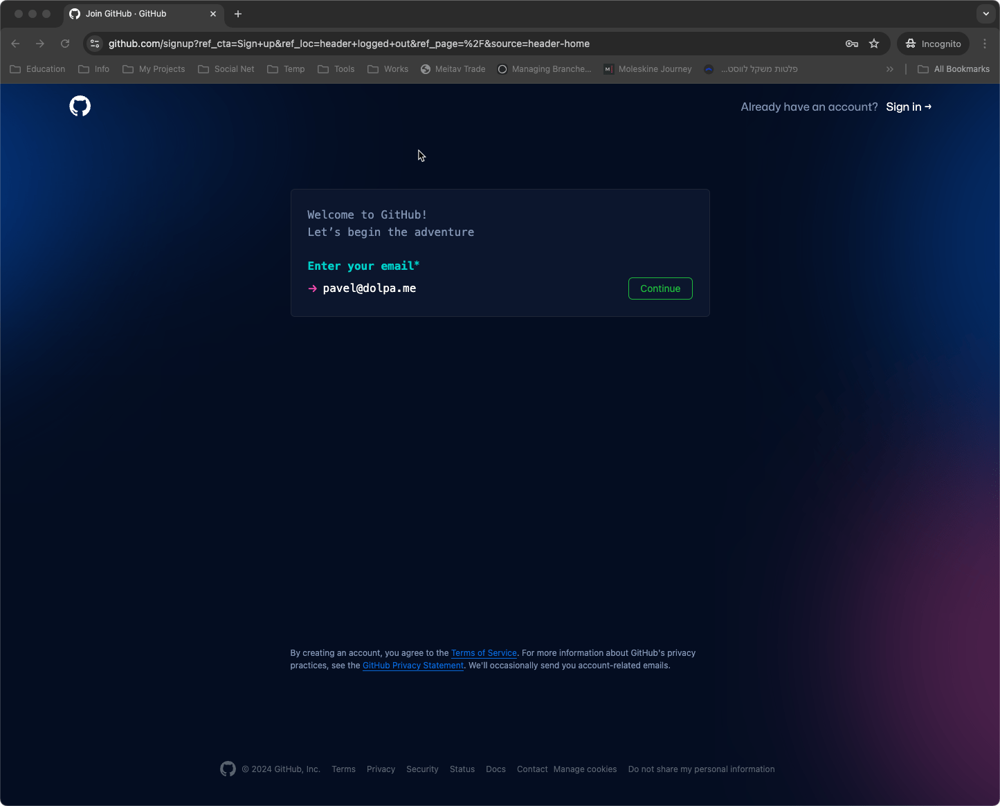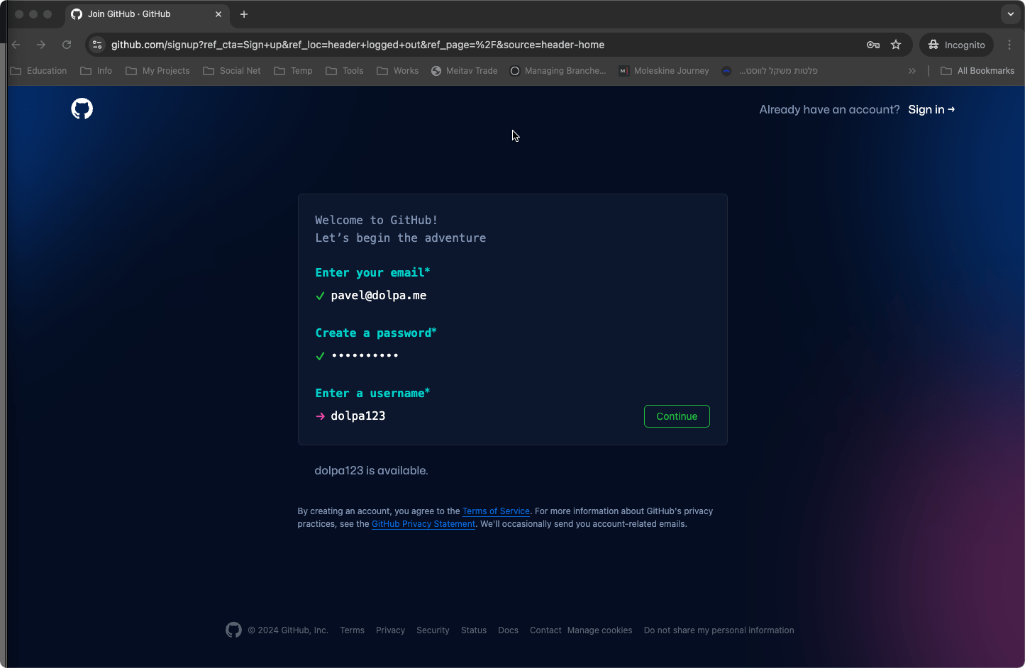 - Start the Registration Process: GitHub will now present you with a chat-like registration form. Unlike the old days of simple forms, you’ll be guided through the process in a conversational manner by an automated bot.