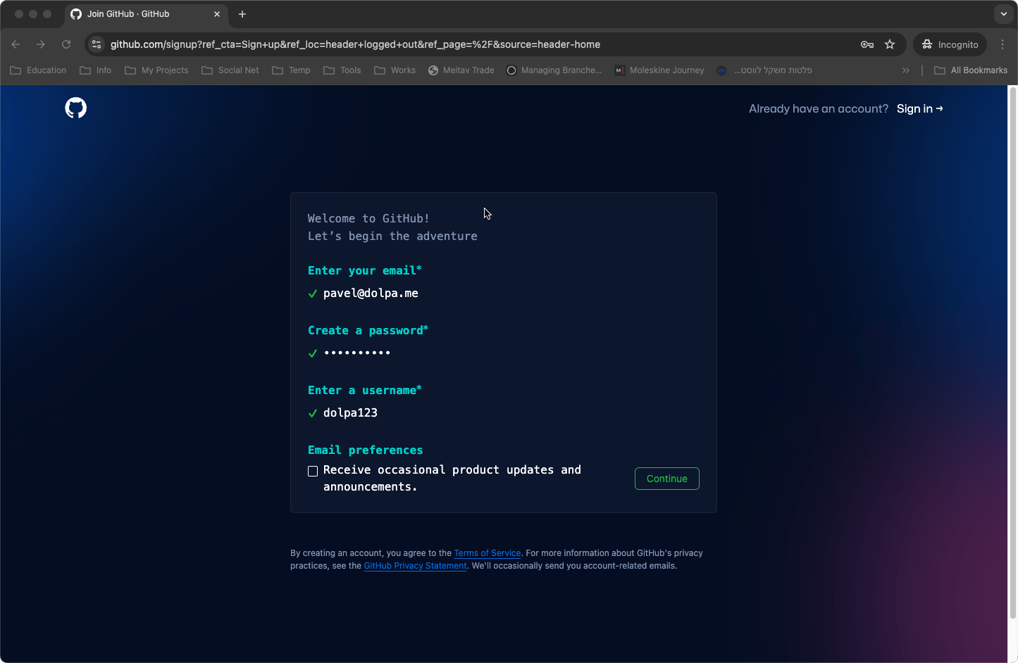 - Email Preferences: GitHub will ask if you want to receive product updates and announcements via email. This is optional, but they might send promotional content if you opt-in.