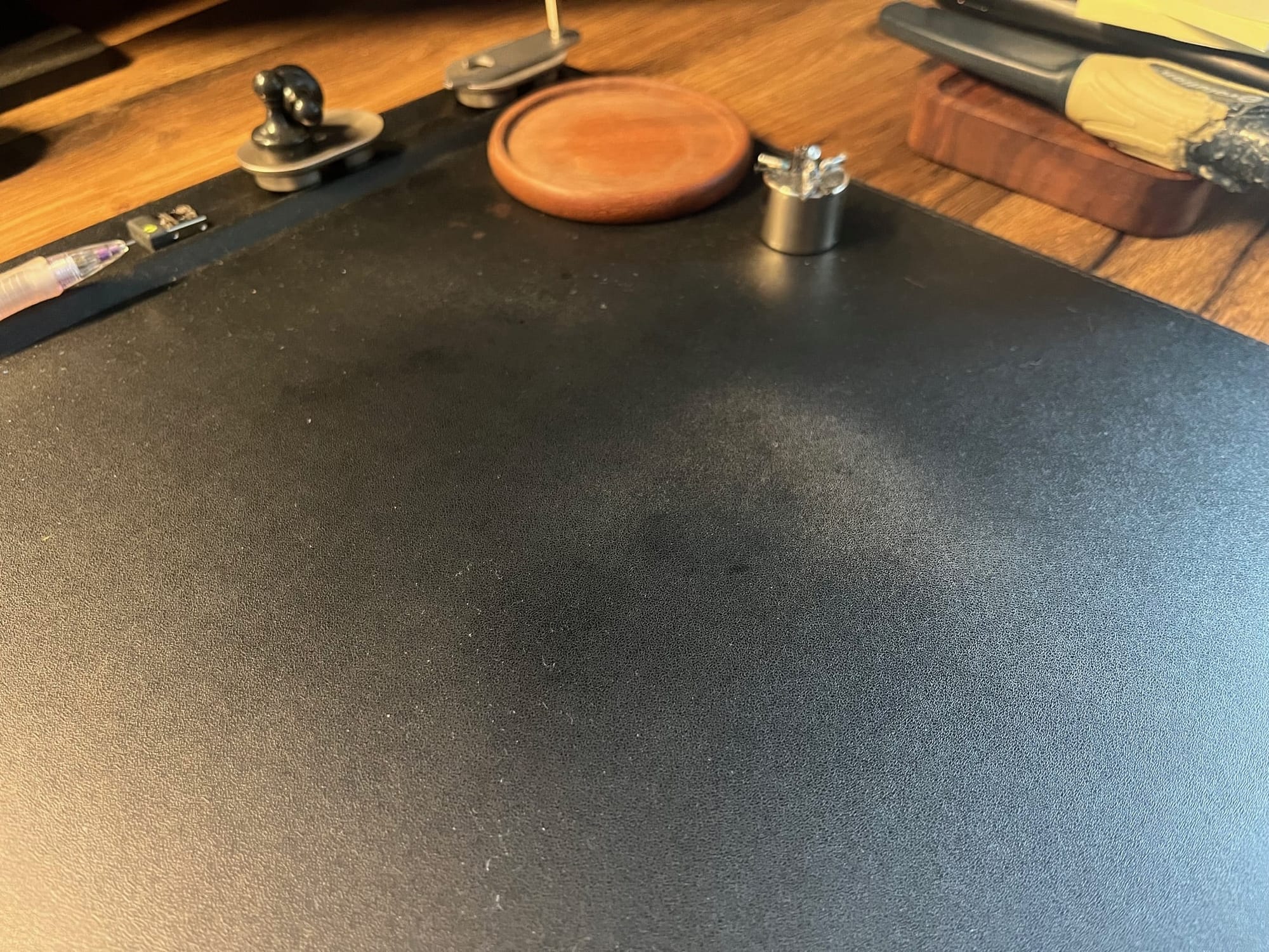 Since the mat arrived rolled up, it took a few days to completely flatten and settle. Initially, it had a slight tendency to slip due to the smoothness of my desk surface. Over time, however, this effect diminished as the mat flattened out and settled more securely in place.