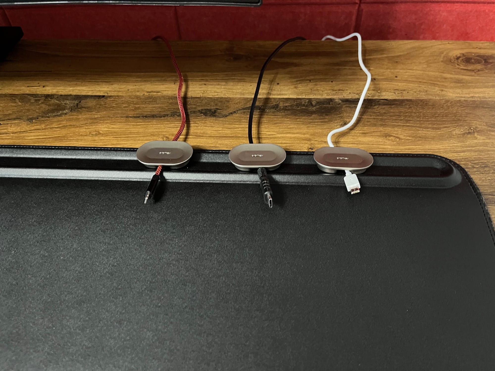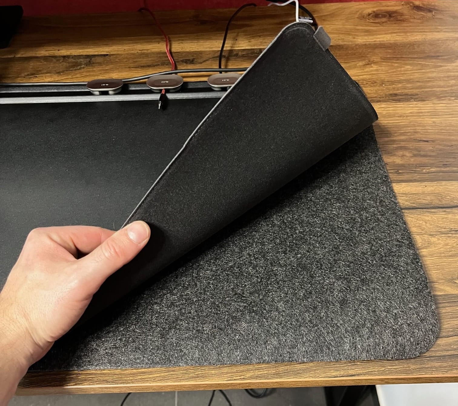 Orbitkey includes a magnetic strip along the top edge of the mat, which comes with a single magnetic cable holder. This is a small but very thoughtful addition, especially for those who like a tidy, organized workspace. I ordered additional magnetic holders to fully utilize this feature, allowing me to secure various cables without tangling or cluttering my desk. These magnets attach firmly and feel weighty, so they stay in place easily.
