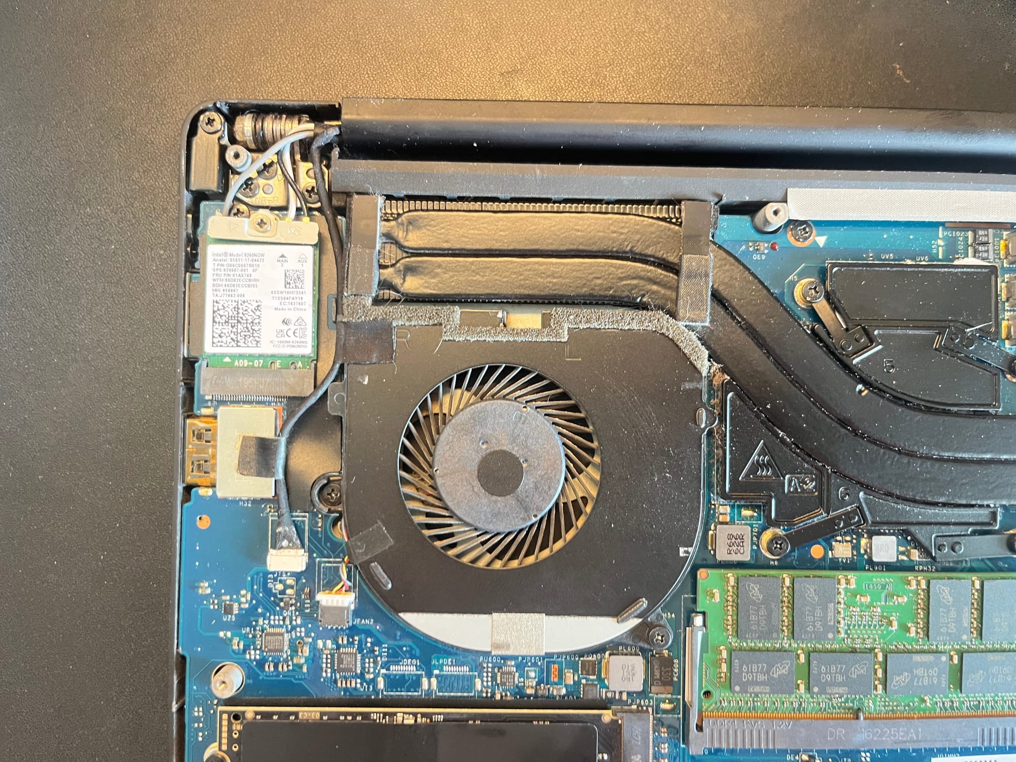 Opening the laptop had already become familiar. The back cover came off without much resistance, revealing the compact layout inside — carefully arranged, tightly packed, and slightly unforgiving. The Wi-Fi card itself was small, almost insignificant in appearance, connected by three thin antenna wires attached with delicate connectors that required careful handling.