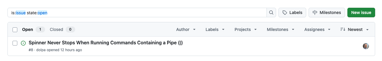 git commit -m "Fix spinner hanging when used with pipe (#7)"
