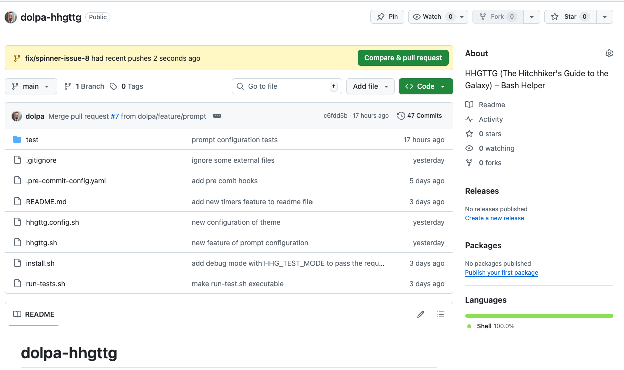 GitHub notices your push and shows a little green button "Compare & Pull Request":