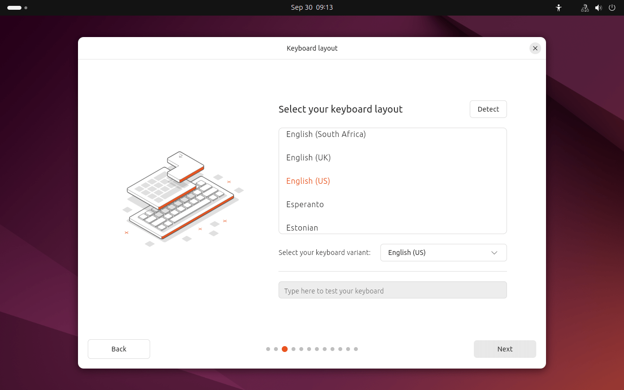 - Automatic Detection (Optional): You can click on the "Detect Keyboard Layout" option, and Ubuntu will attempt to detect your keyboard layout by having you press specific keys. This is helpful if you're unsure of the exact layout you're using.
