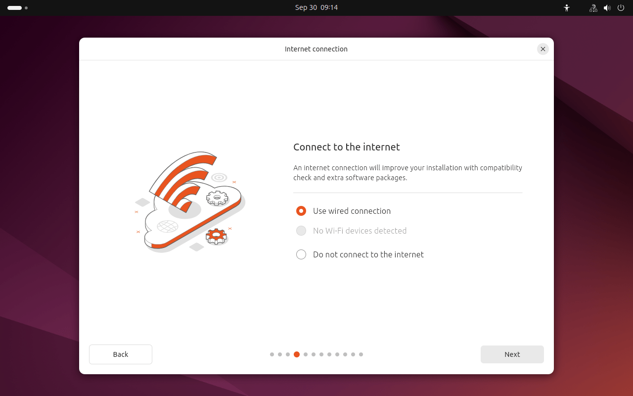 - Advanced Configuration (Optional): If you're on a physical machine or require a specific network setup, such as a static IP address, you can click on the gear icon next to the detected network interface to configure your connection manually.However, if you're in a VM and the networking is detected and configured correctly, no further changes should be needed.