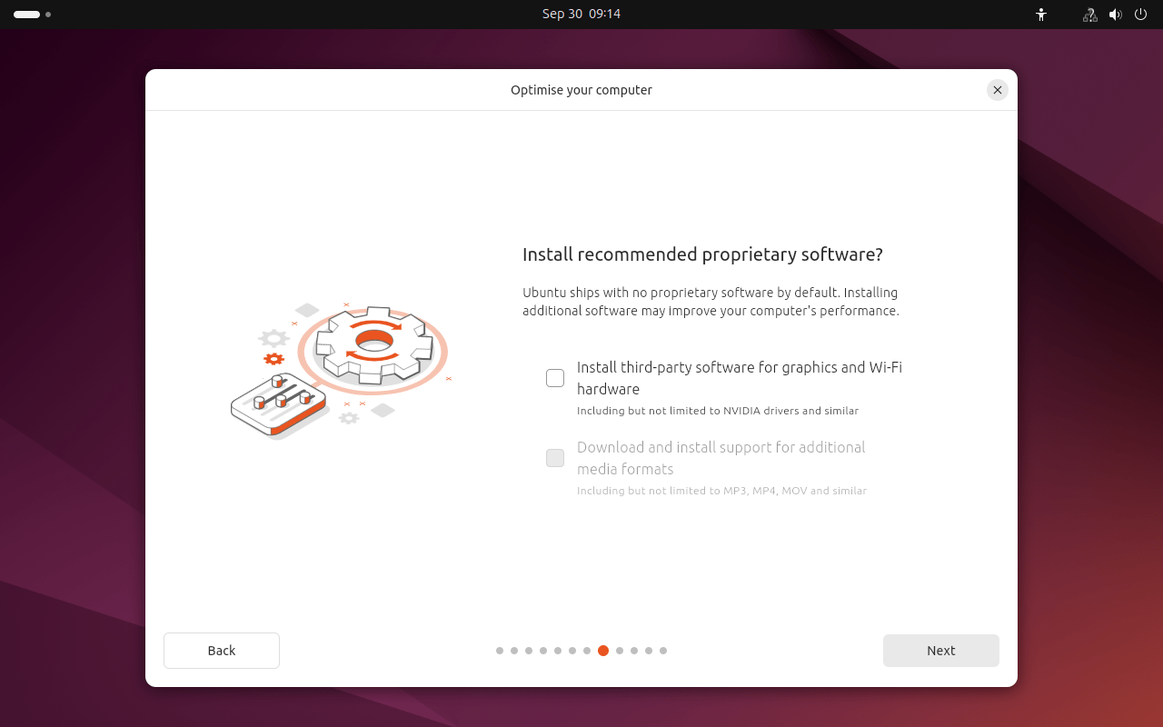 - When to select this option: If you’re using Ubuntu on a machine with modern or specialized hardware (like gaming laptops, high-end workstations, or devices with Wi-Fi/Bluetooth that often need proprietary drivers), it’s a good idea to enable this option. It ensures that your system will have full support for your hardware right after installation.