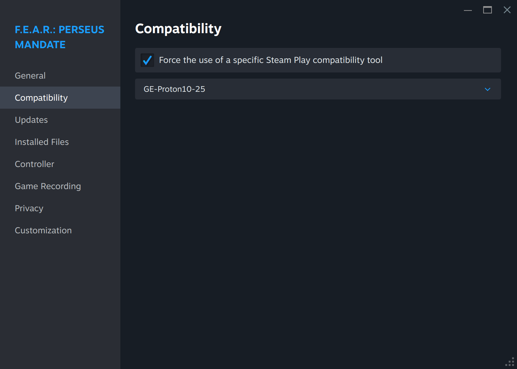 | Set per‑game Proton‑GE in Steam | Right‑click → Properties → Compatibility → “Force specific tool”. |