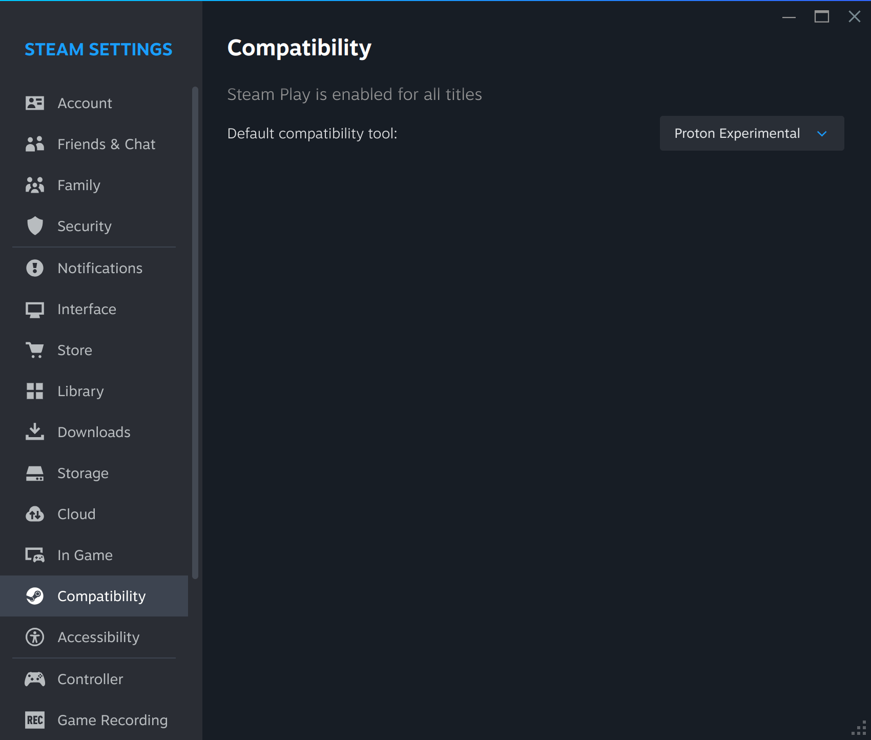- ✅ Enable Steam Play for all other titles